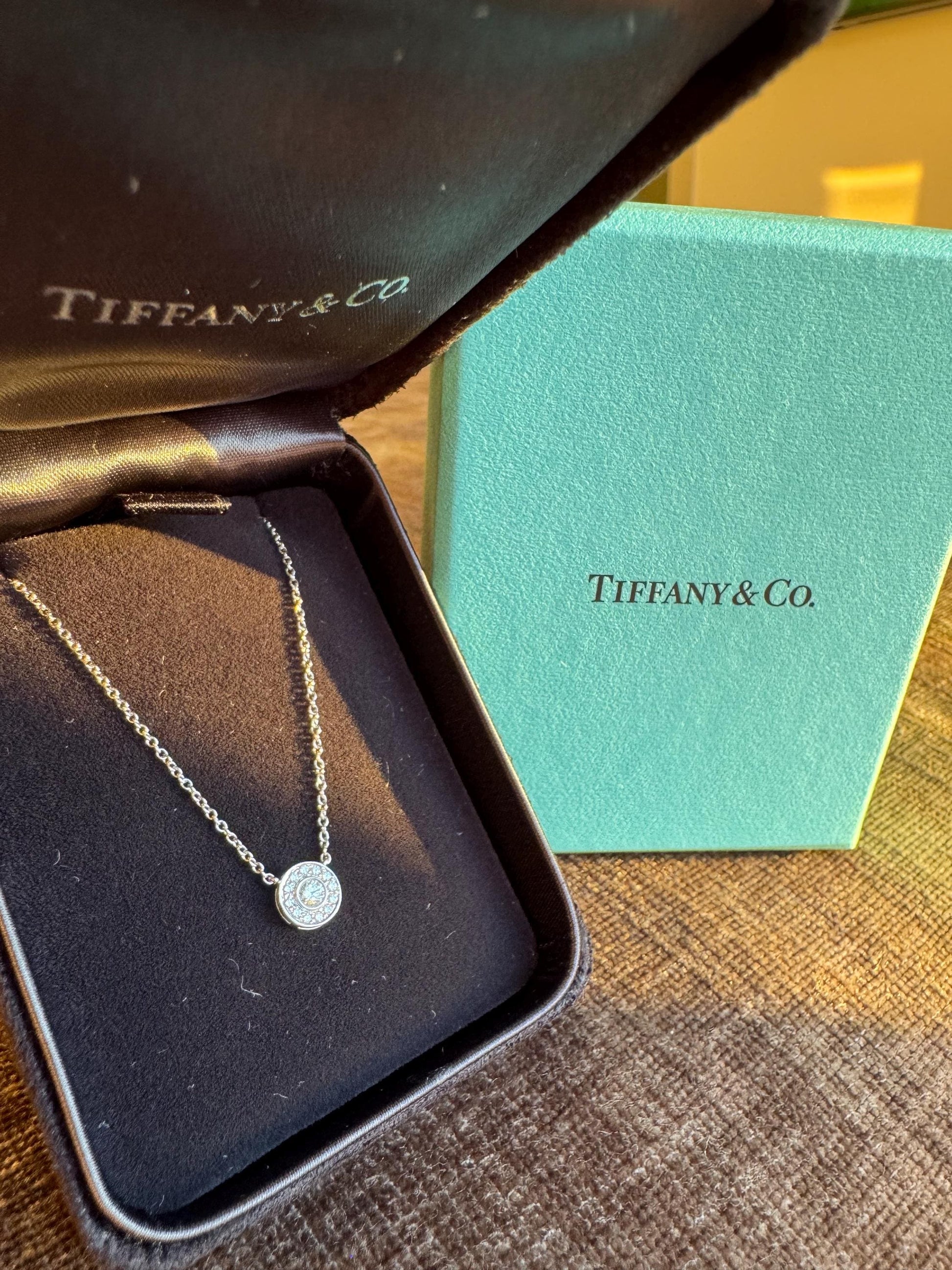 Brand New Tiffany & Co. Diamond Halo Pendant in Platinum